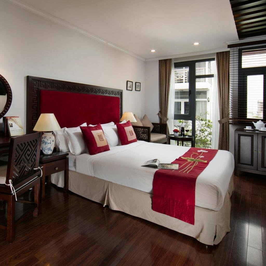 Các phòng còn được trang bị ấm đun nước tiện lợi. Một số phòng có ban công riêng, trong khi số khác hướng ra khung cảnh đường phố Hà Nội. Ga trải giường và khăn tắm được cung cấp đầy đủ cho mọi phòng.