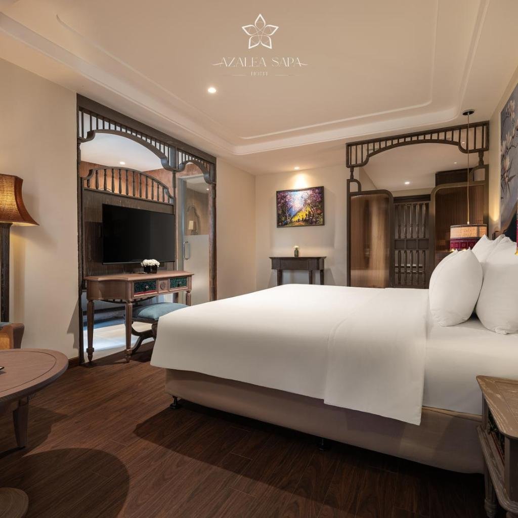 Các phòng tại Azalea Sapa Hotel được trang bị điều hòa nhiệt độ, phù hợp với khí hậu Sa Pa thường xuyên thay đổi. Mỗi phòng có bàn làm việc, két an toàn, TV màn hình phẳng và sân hiên riêng. Phòng tắm được thiết kế độc lập với vòi sen, đảm bảo sự riêng tư.
