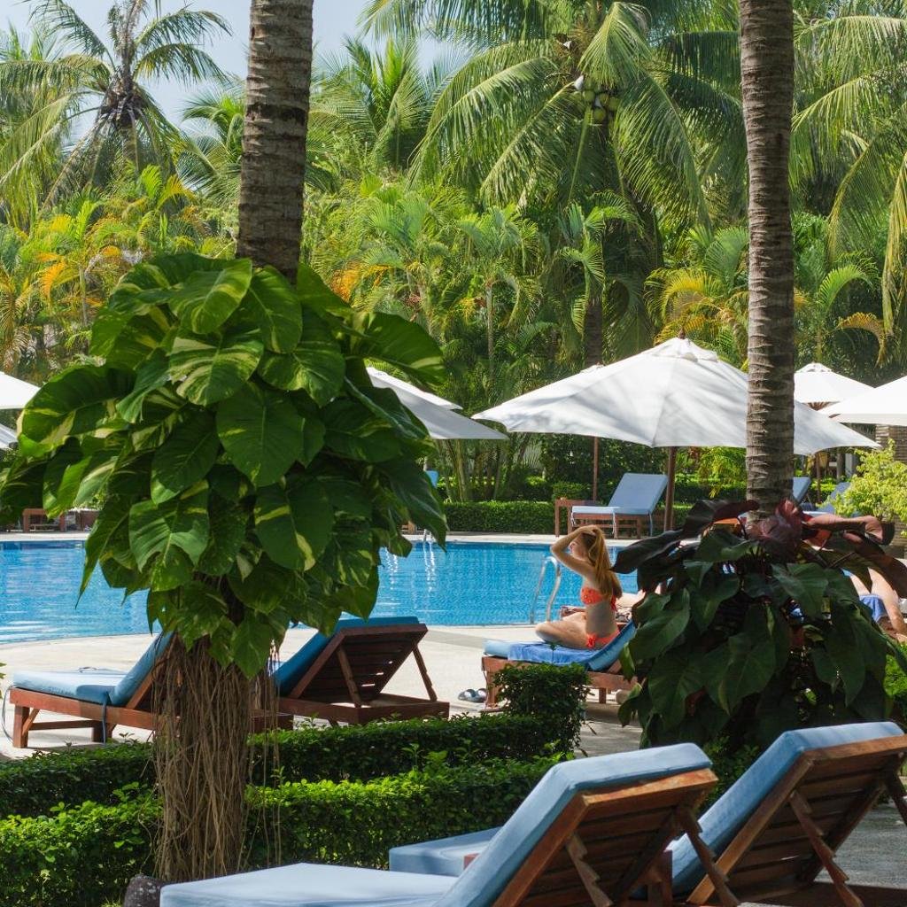 Mỗi phòng được trang bị đầy đủ các tiện nghi cơ bản gồm máy điều hòa, tủ quần áo, khu vực ghế ngồi, két an toàn, truyền hình cáp màn hình phẳng, tủ lạnh mini và ấm đun nước điện. Một số hạng phòng có thêm ban công riêng với tầm nhìn ra biển, hồ bơi hoặc vườn cây xanh mát.