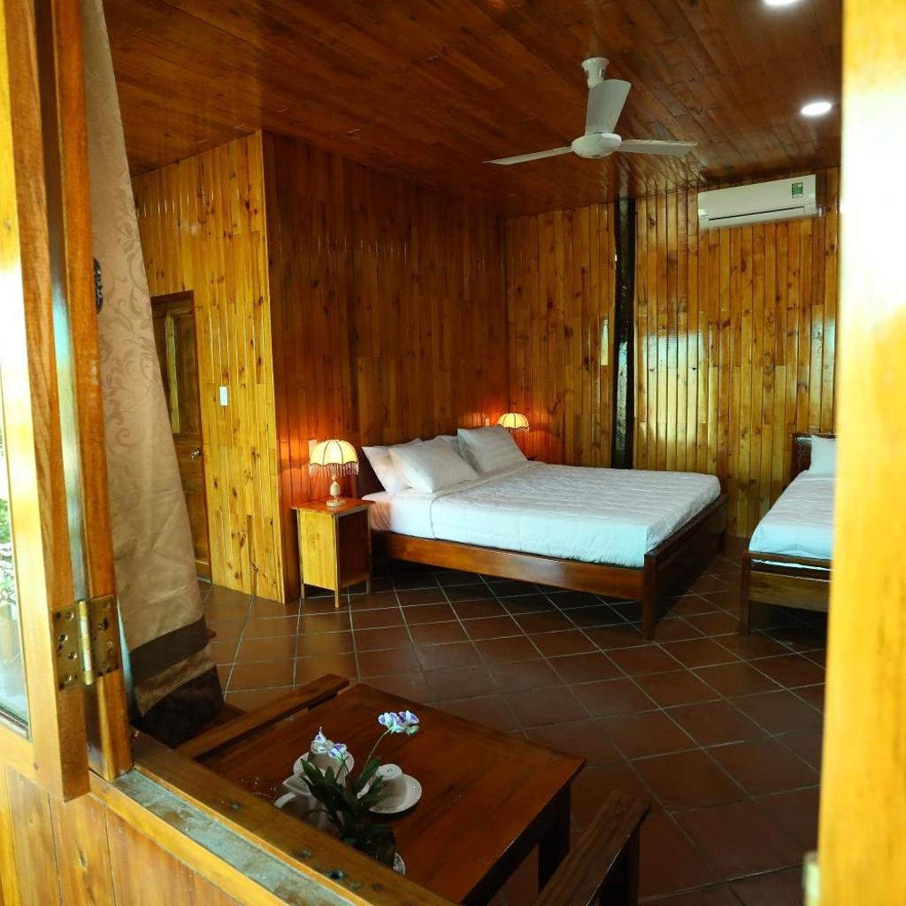 Các phòng tại homestay được thiết kế phù hợp cho gia đình, mỗi phòng đều có phòng tắm riêng đảm bảo sự riêng tư. Phòng được trang bị máy điều hòa nhiệt độ, bàn làm việc tiện lợi và kết nối WiFi miễn phí. Điểm đặc biệt là mỗi phòng đều có ban công với tầm nhìn ra khu vườn, tạo cảm giác thư giãn và gần gũi với thiên nhiên.