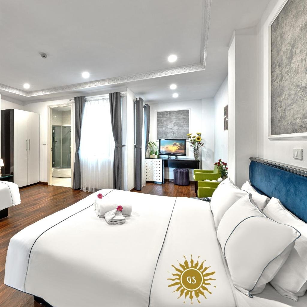 Các phòng nghỉ tại Golden Sun Hotel được trang bị đầy đủ tiện nghi hiện đại với máy điều hòa nhiệt độ, phòng tắm riêng và đồ vệ sinh cá nhân miễn phí. Mỗi phòng có bàn làm việc và TV, tạo không gian thoải mái cho cả mục đích nghỉ ngơi lẫn công tác. Khách sạn cung cấp phòng gia đình, phù hợp với nhiều đối tượng khách du lịch khác nhau.