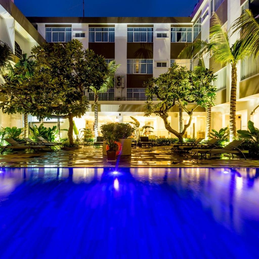 - Hồ bơi ngoài trời phục vụ nhu cầu thư giãn và tắm nắng