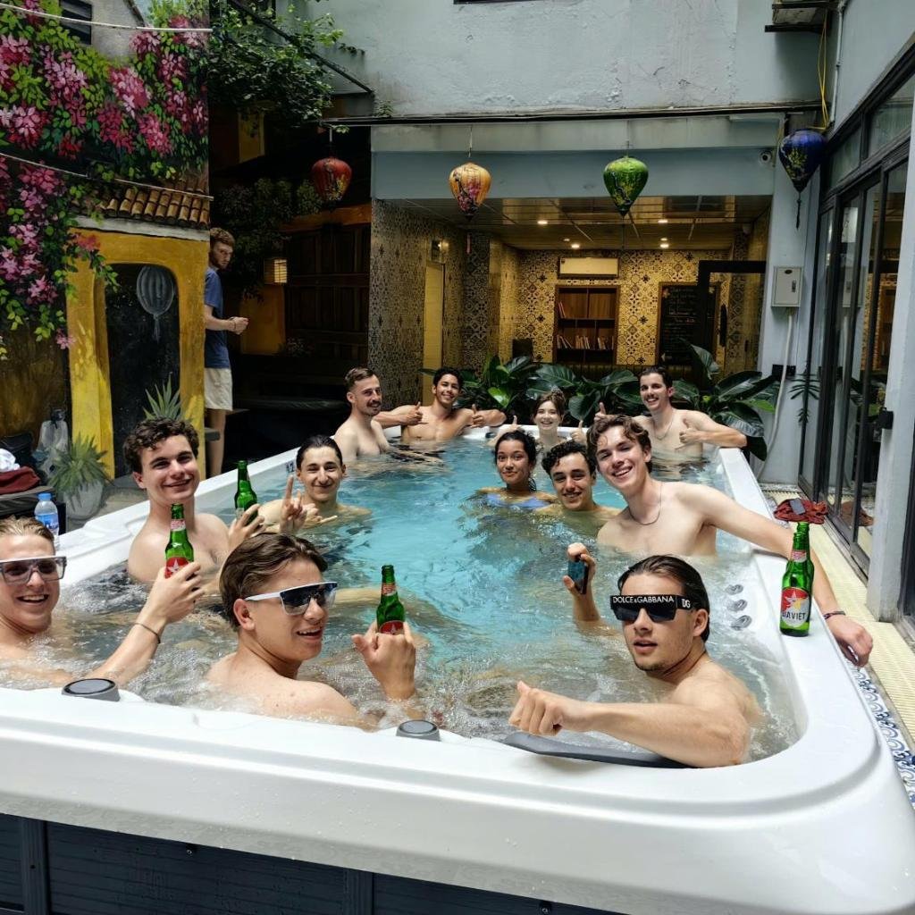 Hostel có phòng chờ chung - không gian lý tưởng để du khách giao lưu và chia sẻ trải nghiệm. Khu vực này cùng với quầy bar tạo nên bầu không khí thân thiện đặc trưng của các hostel. Điểm đáng chú ý là cơ sở có bể sục và tổ chức các hoạt động giải trí vào buổi tối.