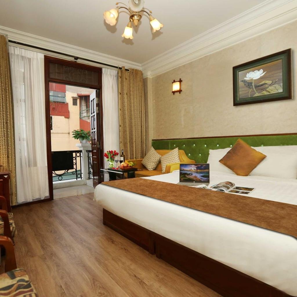 Các phòng nghỉ tại Golden Lotus Hotel Hanoi được thiết kế theo phong cách trang trí phương Đông, tạo nên không gian ấm cúng và gần gũi với văn hóa bản địa. Sàn gỗ được sử dụng trong toàn bộ phòng, mang lại cảm giác ấm áp và sang trọng.