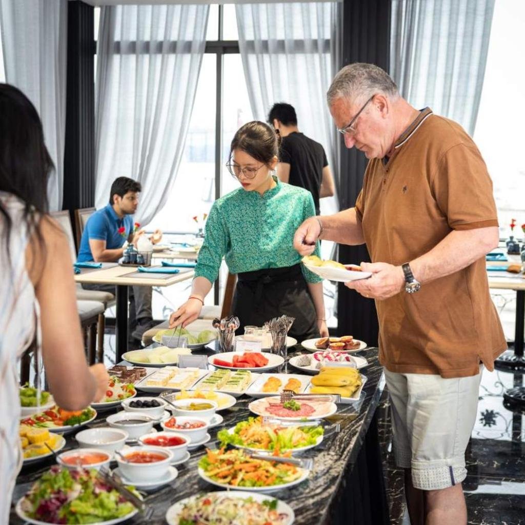Nhà hàng tại khách sạn phục vụ thực đơn đa dạng với các món ăn từ nhiều nền ẩm thực khác nhau bao gồm châu Phi, Mỹ, Argentina và Bỉ. Buổi sáng, khách có thể lựa chọn giữa bữa sáng buffet, thực đơn à la carte hoặc kiểu lục địa tùy theo sở thích cá nhân. Sự đa dạng trong thực đơn giúp đáp ứng khẩu vị của nhiều đối tượng khách du lịch quốc tế.