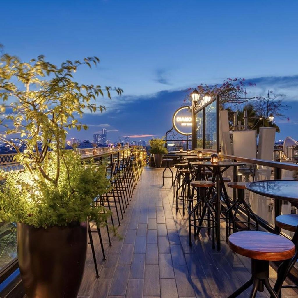 Điểm nhấn của La Mejor là Diamond Sky Bar trên tầng 10, nơi có tầm nhìn toàn cảnh 360 độ ra khu phố cổ và thành phố Hà Nội. Không gian này phù hợp cho những ai muốn thưởng thức đồ uống trong bầu không khí thoáng đãng và ngắm nhìn toàn cảnh thủ đô từ trên cao.