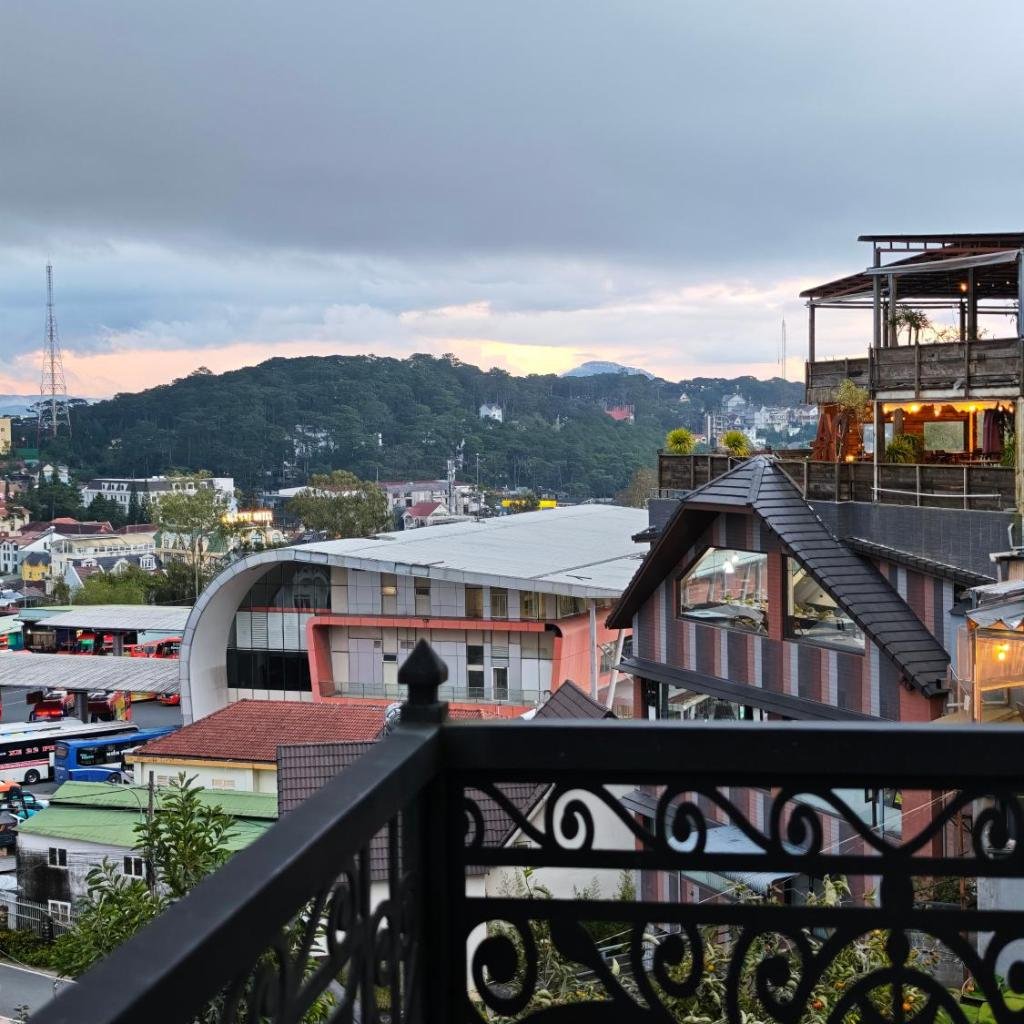 Khách sạn có khu vực sân hiên nơi du khách có thể thư giãn và tận hưởng không khí mát mẻ đặc trưng của Đà Lạt. Không gian này thích hợp cho việc nghỉ ngơi sau những chuyến tham quan dài trong ngày.