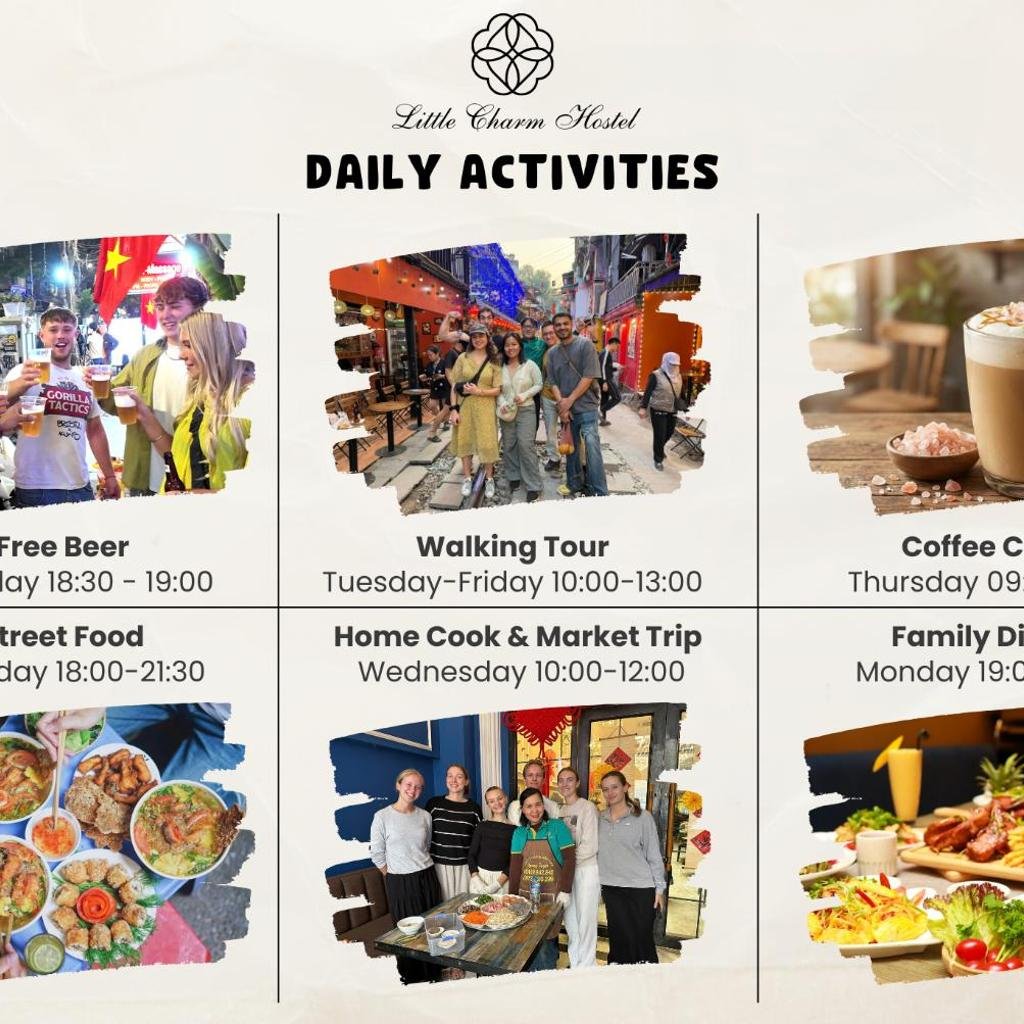 Little Charm Hanoi Hostel là lựa chọn phù hợp cho những du khách muốn trải nghiệm phong cách lưu trú kết hợp giữa nét Á Âu ngay tại trung tâm phố cổ. Với vị trí thuận lợi, các tiện nghi cơ bản đầy đủ và dịch vụ hỗ trợ chu đáo, nhà trọ mang đến một trải nghiệm lưu trú khá thoải mái cho những chuyến du lịch khám phá Hà Nội.