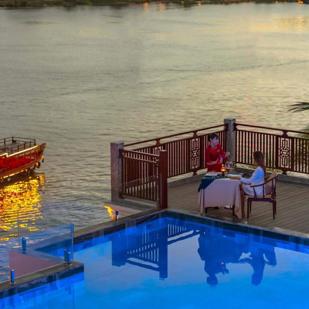 Nhà hàng trong khuôn viên phục vụ đa dạng các món ăn quốc tế, châu Á và Việt Nam. Thực đơn còn có các lựa chọn món ăn không chứa gluten phù hợp với nhu cầu ăn kiêng đặc biệt. Mỗi sáng, du khách được thưởng thức bữa sáng kiểu lục địa tại chỗ nghỉ. Khi đến, khách sẽ được chào đón bằng đồ uống chào mừng.