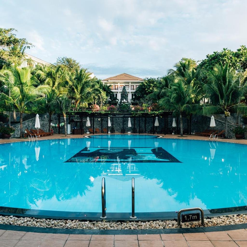 Resort có hồ bơi ngoài trời với phong cách nhiệt đới, nơi du khách có thể thư giãn và tận hưởng không khí mát mẻ. Khu vực hồ bơi được thiết kế phù hợp cho cả gia đình và nhóm bạn bè muốn có những giờ phút nghỉ ngơi thoải mái.