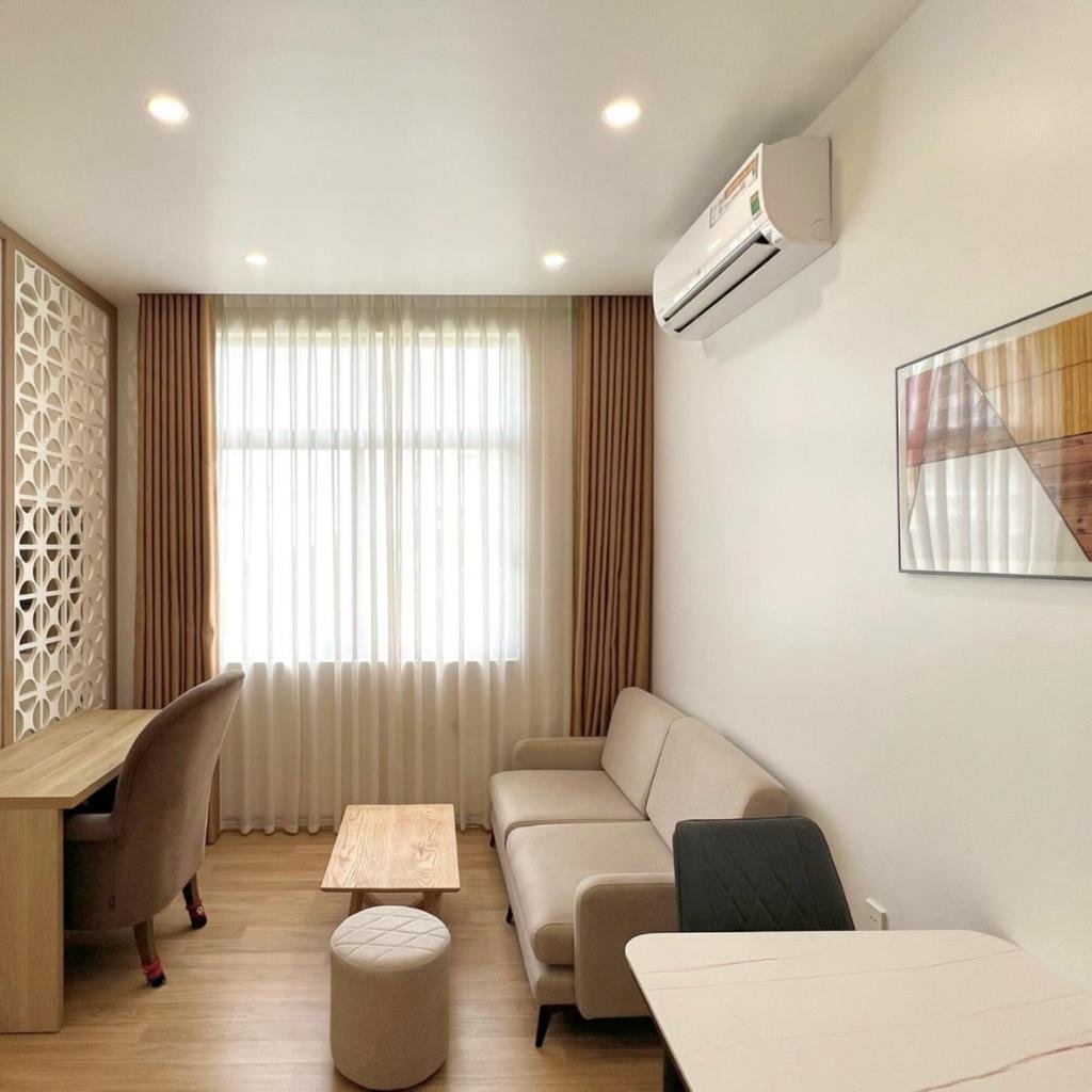 Đặc biệt, các căn hộ được thiết kế với bếp đầy đủ tiện nghi bao gồm tủ lạnh, lò vi sóng và ấm đun nước, giúp du khách có thể tự chuẩn bị bữa ăn theo ý muốn. Khu vực ăn uống riêng biệt tạo không gian sinh hoạt thoải mái cho gia đình hoặc nhóm bạn.