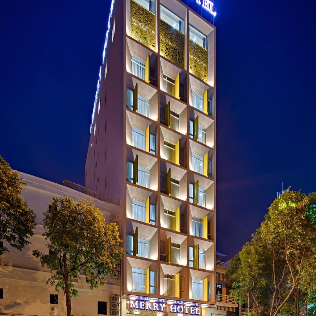 Merry Hotel tọa lạc tại thành phố Đà Nẵng, cách bãi biển Mỹ Khê khoảng 2.7 km - một trong những bãi biển đẹp và nổi tiếng của miền Trung. Điểm đặc biệt của khách sạn này là nằm ngay cạnh Cầu khóa Tình yêu Đà Nẵng, chỉ mất 1 phút đi bộ để đến điểm tham quan này.