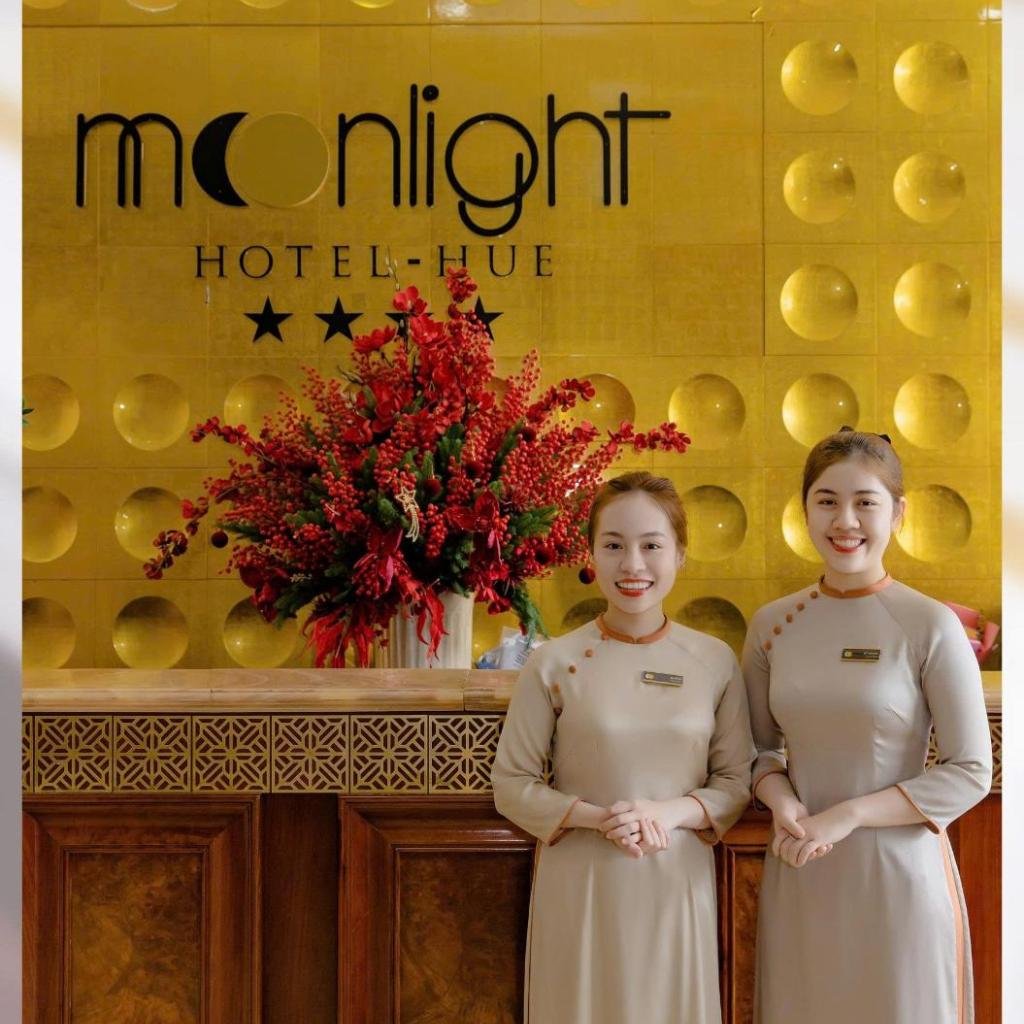 Lễ tân hoạt động 24/24 giờ tại Moonlight Hotel Hue, sẵn sàng hỗ trợ du khách bất cứ lúc nào. Khách sạn cung cấp các dịch vụ như giặt ủi, cho thuê ô tô và xe đạp, cùng dịch vụ phòng. Du khách có thể sử dụng dịch vụ đưa đón sân bay với mức phí bổ sung, tạo thêm sự tiện lợi cho hành trình.