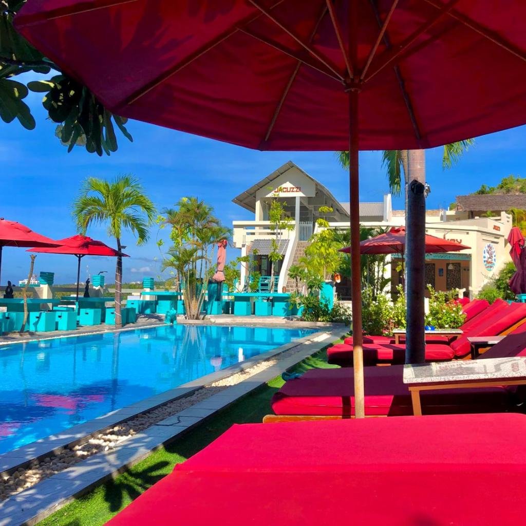 Khu vực hồ bơi ngoài trời cũng có quầy bar phục vụ đồ ăn nhẹ và cocktail, tạo không gian thư giãn bên cạnh hoạt động bơi lội. Du khách có thể kết hợp giữa vận động và thưởng thức đồ uống trong cùng một khu vực.