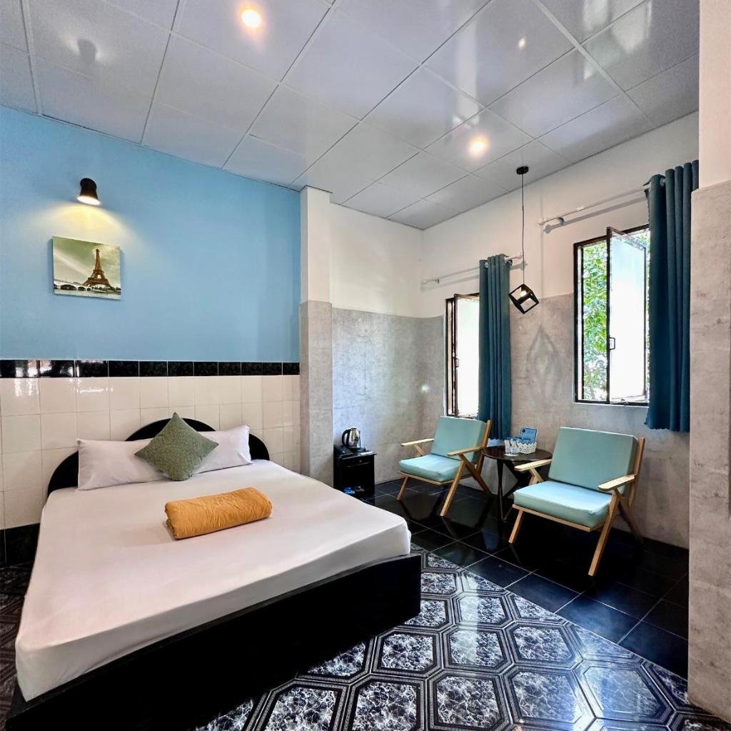 Một điểm đáng chú ý là khách sạn có khu vực sân hiên, mang đến không gian thư giãn ngoài trời. Phòng khách được bố trí khu vực ghế ngồi, tạo không gian chung thoải mái cho khách lưu trú.