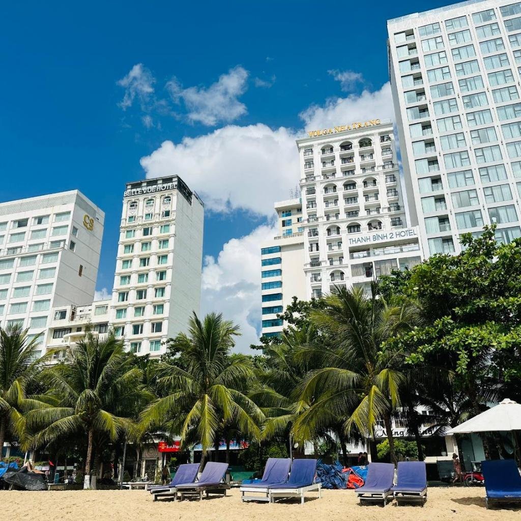 Khách sạn mang đến bầu không khí tương đối thanh bình so với các khu vực sầm uất khác ở Nha Trang. Vị trí giáp biển nhưng không quá đông đúc giúp du khách có thể thư giãn sau những ngày tham quan. Khoảng cách đến Trung tâm du lịch Suối khoáng nóng Tháp Bà và Chợ Đầm đều trong tầm di chuyển hợp lý, phục vụ cho nhu cầu khám phá và mua sắm.