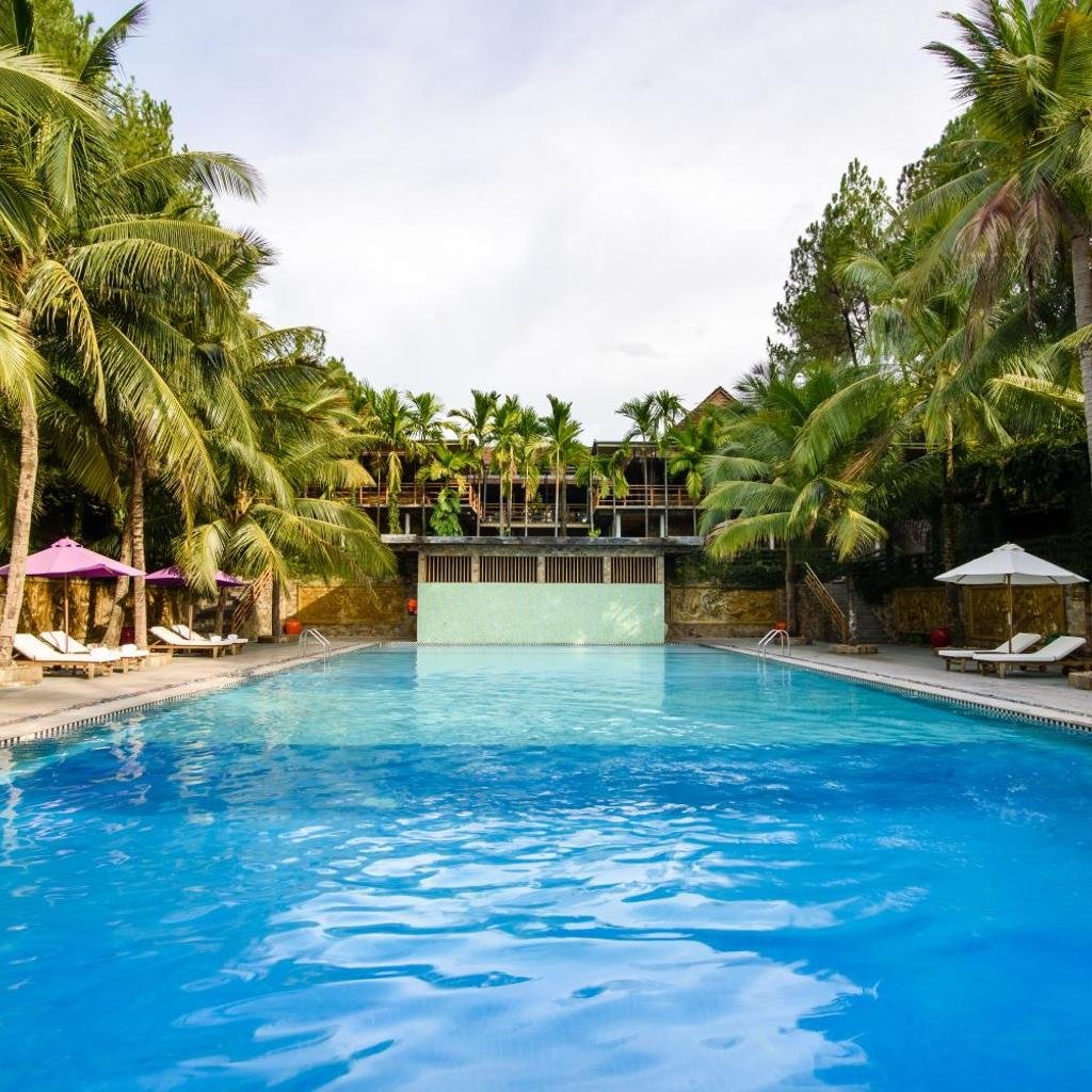 - Hồ bơi ngoài trời giữa không gian xanh mát