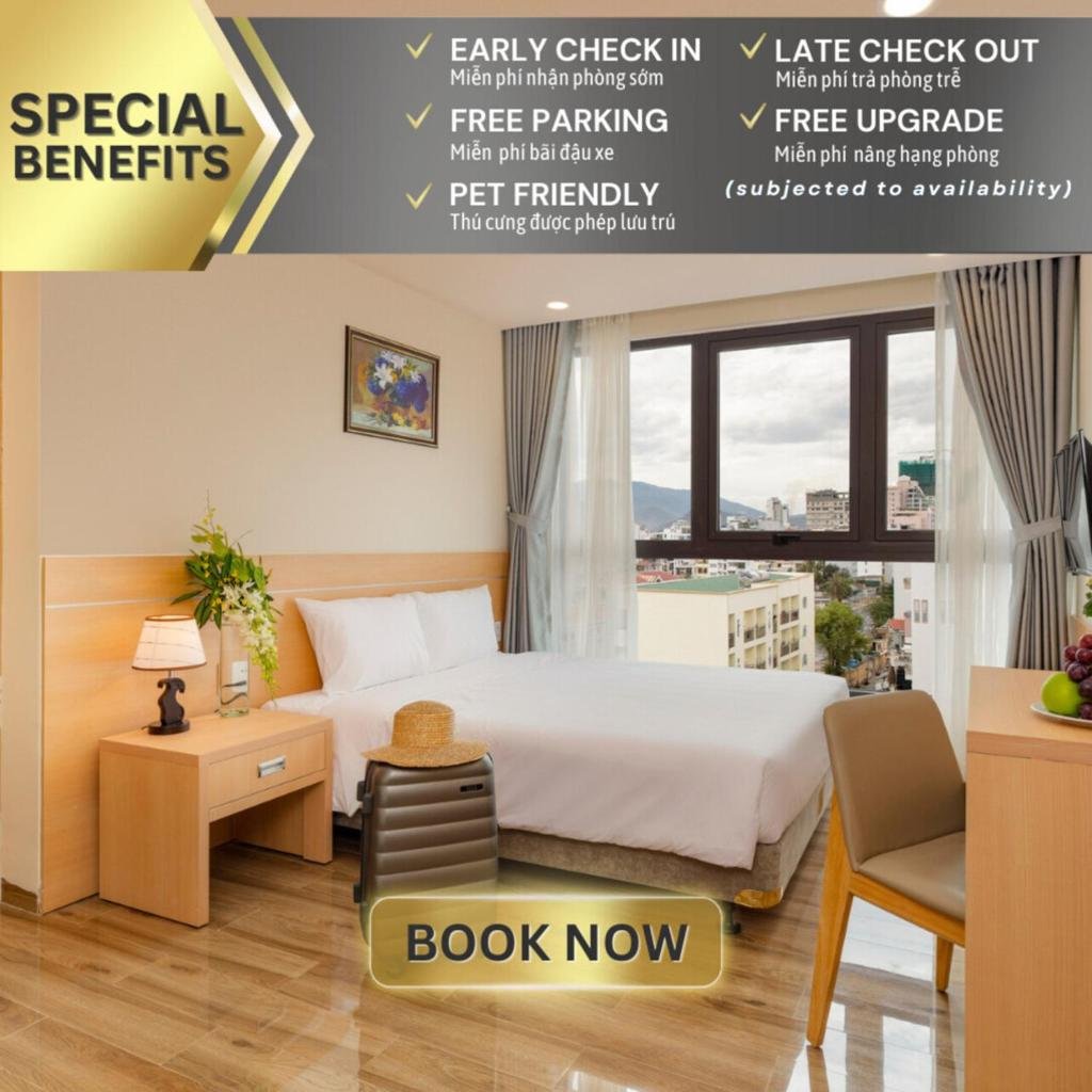 Khách sạn có vị trí thuận lợi, nằm cách bãi biển Nha Trang khoảng 8 phút đi bộ. Từ đây, du khách có thể dễ dàng di chuyển đến các điểm tham quan gần đó như Tháp Trầm Hương (2 km), Trung tâm mua sắm Nha Trang Centre và Nhà thờ Nha Trang.