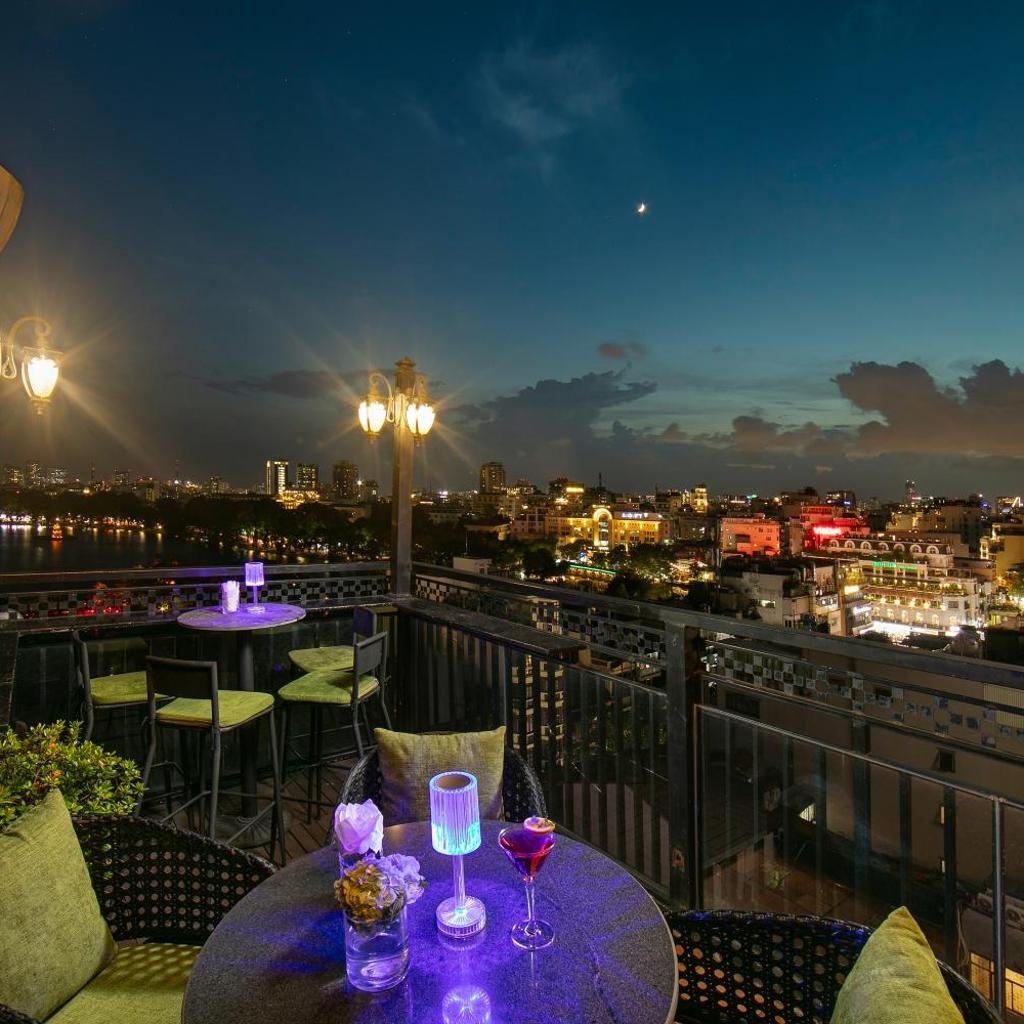 Ngoài phòng nghỉ, khách sạn còn có các khu vực chung như phòng chờ, sân hiên và quầy bar - Sky Bar. Đây là những không gian phù hợp để khách thư giãn, giao lưu sau những giờ tham quan hay làm việc. Sky Bar tạo ra một điểm nhấn đặc biệt trong trải nghiệm lưu trú tại đây.