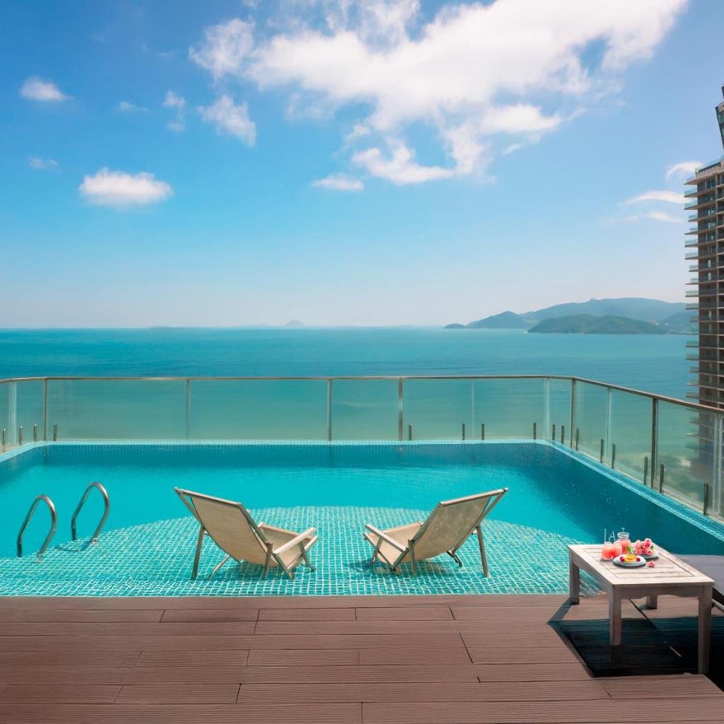 Một trong những tiện ích đáng chú ý tại V Hotel Nha Trang là hồ bơi trên tầng mái. Từ đây, du khách có thể ngắm nhìn cảnh biển trong khi thư giãn. Sân thượng tắm nắng cũng là nơi lý tưởng để du khách tận hưởng không khí biển và ánh nắng Nha Trang.