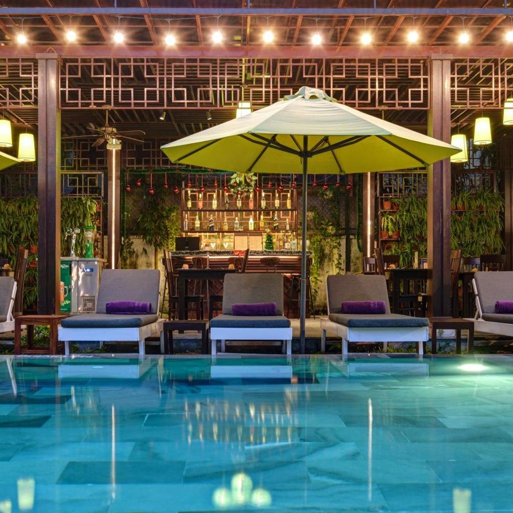 White Lotus Hotel Hoian được trang bị hồ bơi ngoài trời cùng sân hiên phơi nắng, tạo nên không gian lý tưởng để thư giãn sau những ngày khám phá phố cổ. Khu vực này phù hợp cho cả gia đình và du khách muốn tận hưởng không khí trong lành của Hội An.