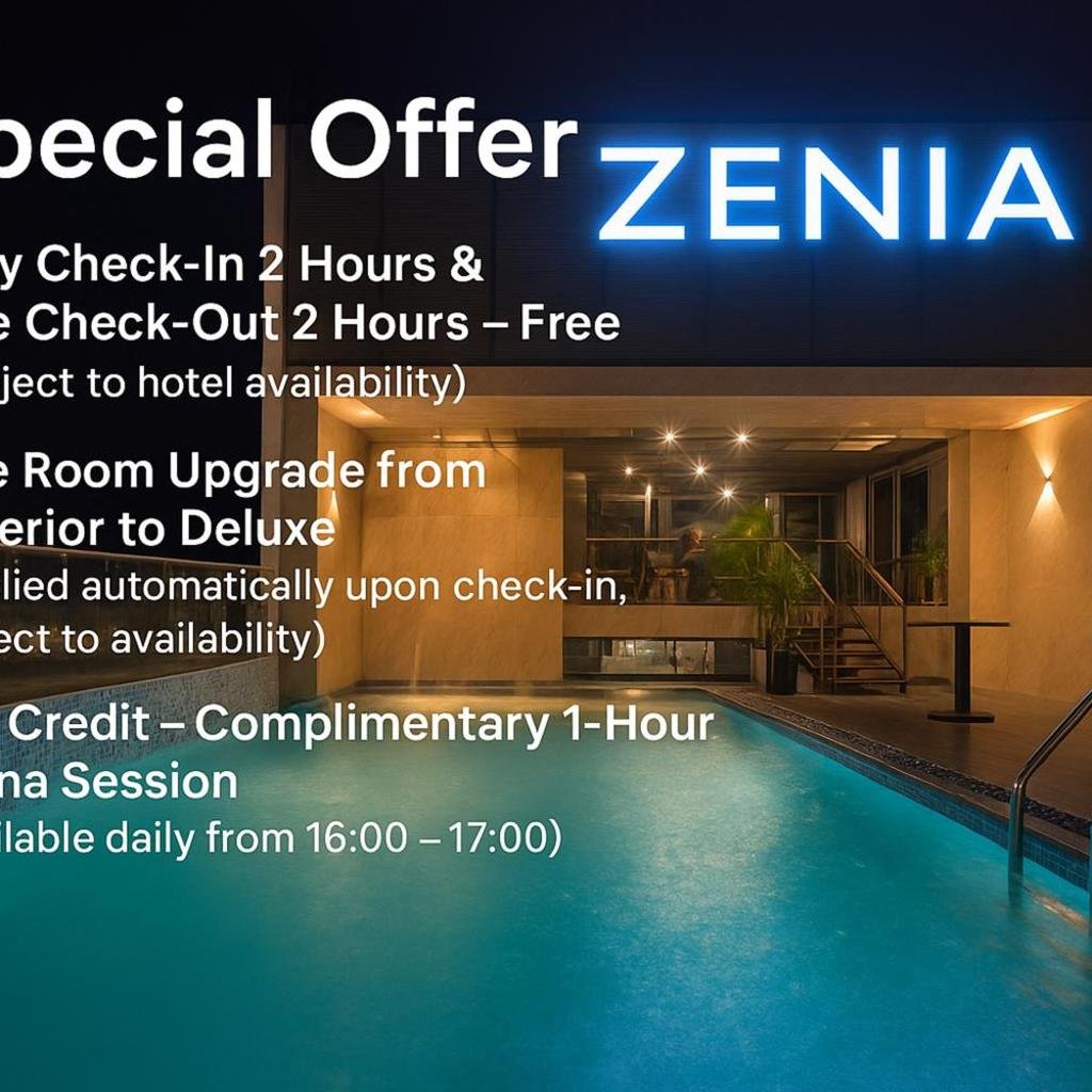 Đội ngũ nhân viên lễ tân tại Zenia Hotel có thể giao tiếp bằng tiếng Anh và tiếng Việt, hỗ trợ khách trong và ngoài nước. Khách sạn cung cấp dịch vụ đưa đón sân bay có tính phí, giúp du khách thuận tiện hơn trong việc di chuyển từ sân bay về khách sạn và ngược lại.